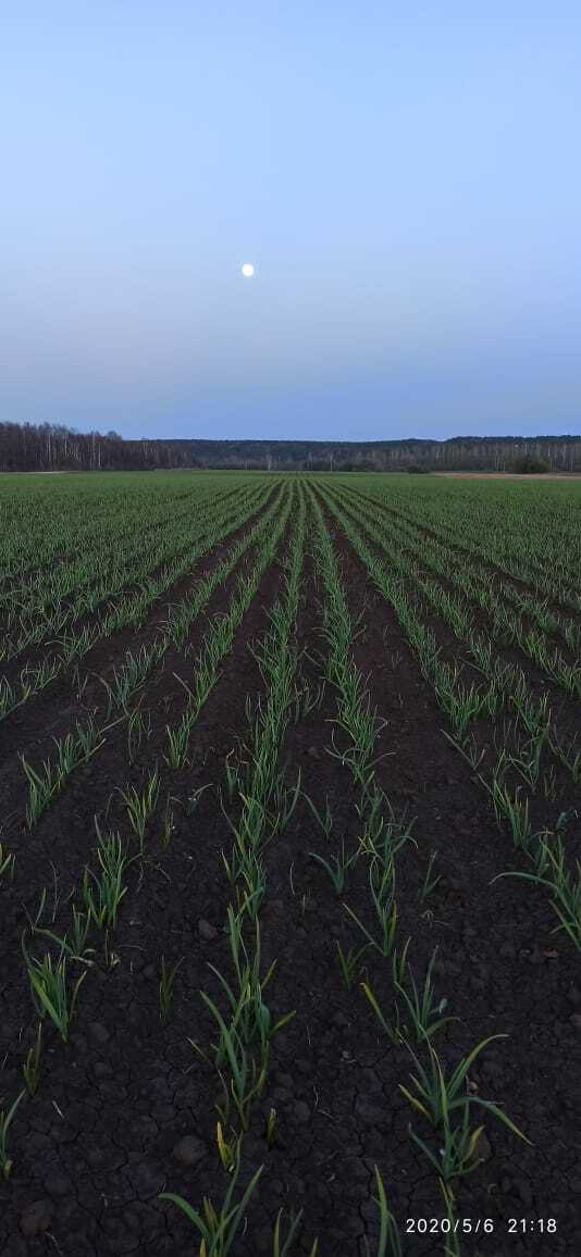 Озимый чеснок обычно убирают в середине - конце июля. Определить готовность чеснока к уборке можно по пожелтевшим листовым пластинкам. Кроющие чешуи на луковицах ко времени уборки становятся тонкими и приобретают характерную для сорта окраску. Корневая система отмирает.В сентябре (за 5-6 недель до наступления устойчивых холодов) высаживают озимые сорта чеснока. Чеснок размножают зубками или бульбочками, которые располагают в зависимости от крупности в ряду на расстоянии 5 — 8 см один от другого, между рядами — 45 см. Глубина заделки зубков 5-8 см, бульбочки присыпают землей, а сверху — торфом или парниковой землей слоем 2-3 см, чтобы они не вымерзли. Это также предохраняет грядку от образования корки.