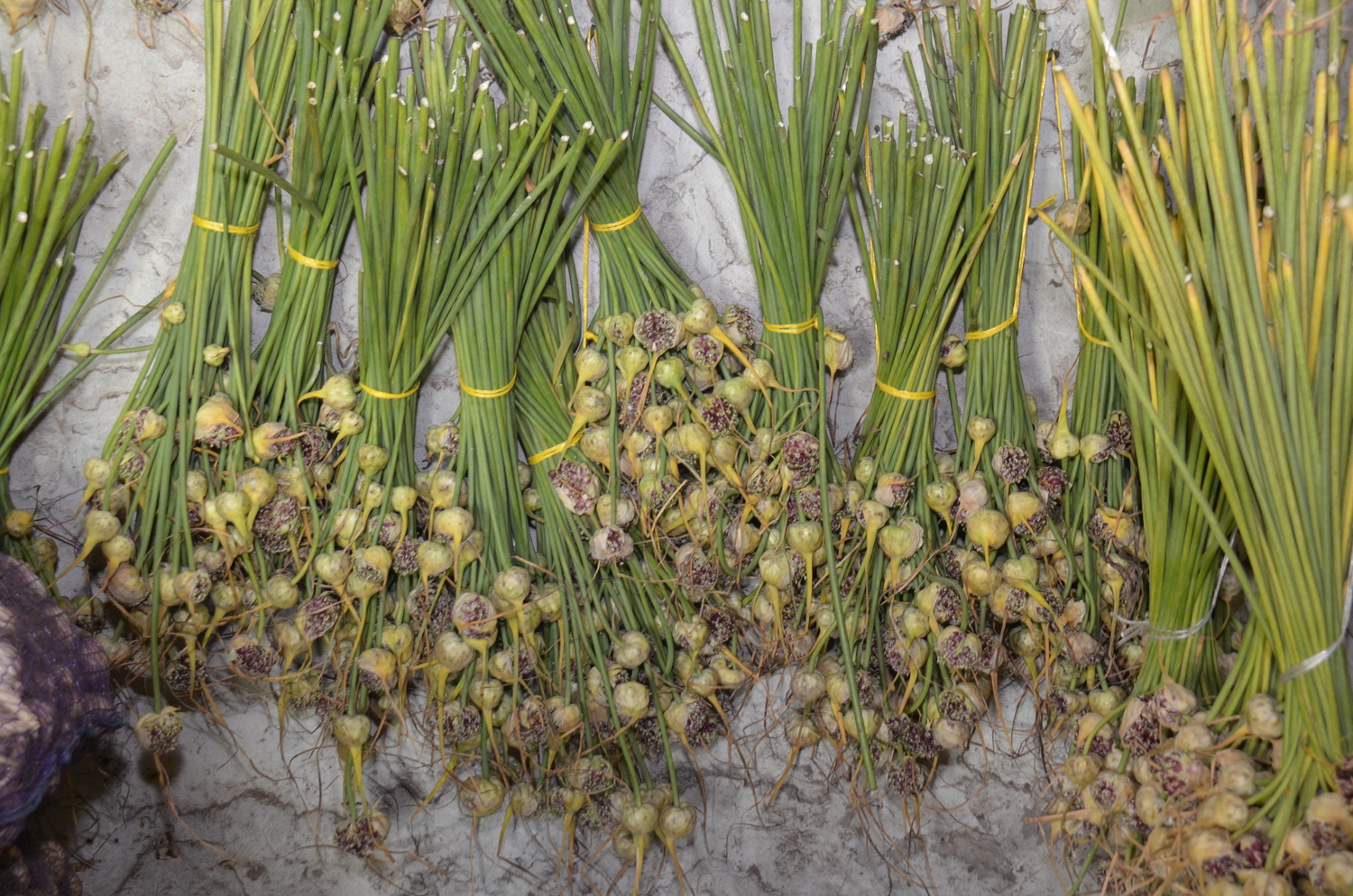 Напомним агротехнику выращивания озимого чеснока. Почва должна быть плодородной. Схема посадки обычная - 20x25 или 15x15 на глубину 10-12 см. При делении чеснока на зубки покровную чешую не снимать. Доказано, что осенью она спасает чеснок от заболеваний. Чем крупнее долька, тем крупнее из нее вырастет луковица. Посадки чеснока не поливаются и прикрываются на зиму полиэтиленовой пленкой. Дополнительного укрытия грядок не требуется. А вот пленку снимают весной. Если в период уборки погода дождливая, чеснок нужно сразу же убрать под крышу - на продуваемый чердак, в сарай или на веранду. После подсыхания ботвы и корней обрезают ложный стебель на высоте около 5 см над луковицей и корни, но очень аккуратно, чтобы не поранить донце. Чеснок, подобно луку, можно вязать в «косы», обрезая при этом только корни. Нельзя убирать чеснок невызревшим или опаздывать с его уборкой. Признаки созревания чеснока являются: прекращение роста листьев у стрелкующих сортов, растрескивание соцветий с «бульбочками» на концах стрелок, у нестрелкующихся растений или с обломанной стрелкой – массовое пожелтение и начало полегания листьев.